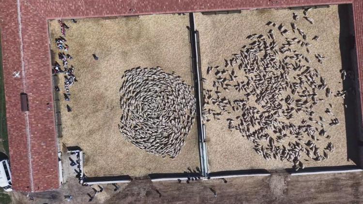 Amasya'da süt alışkanlığı nedeniyle ayrı tutulan kuzular, anneleri ile buluşturuldu. Bu anlar dron ile görüntülendi.