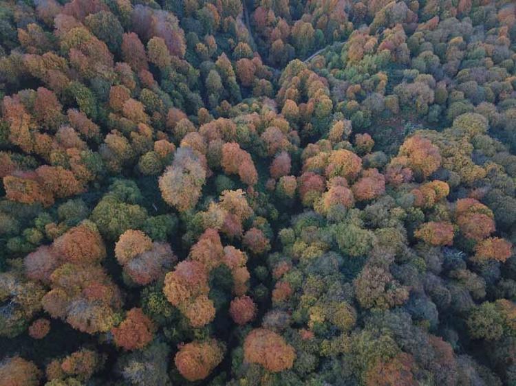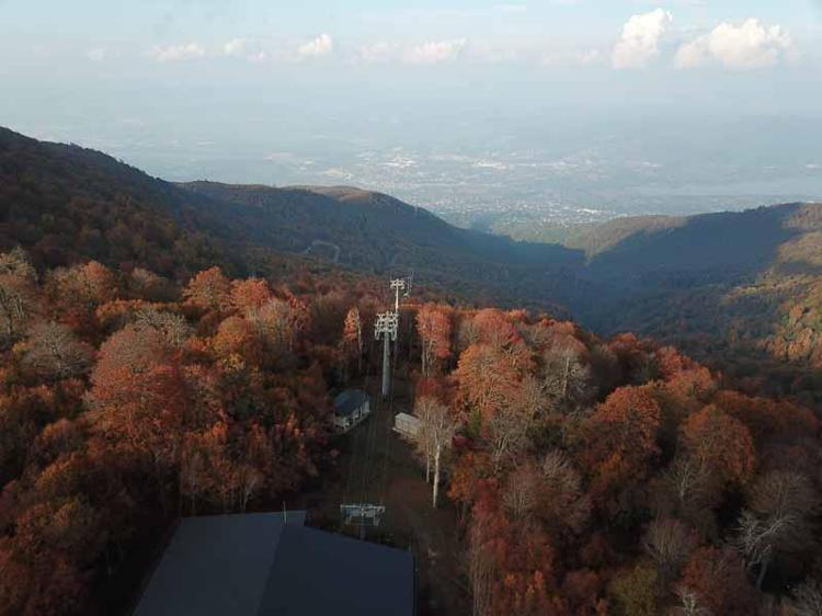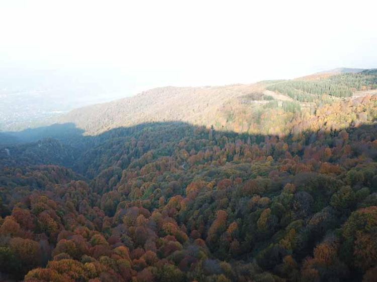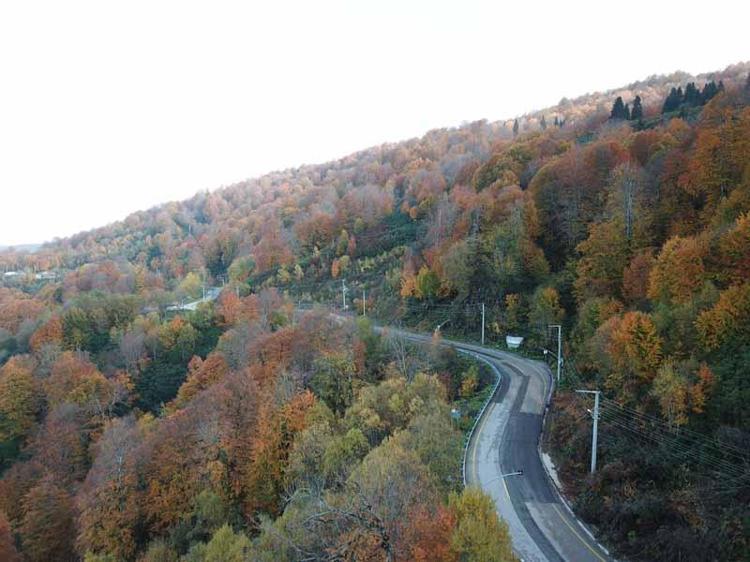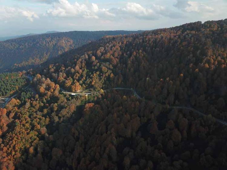 Kocaeli'nin önemli turizm merkezlerinden Kartepe’nin eteklerinde bulunan Kuzuyayla Tabiat Parkı’nda sararan ağaçların oluşturduğu manzara, dron ile görüntülendi.