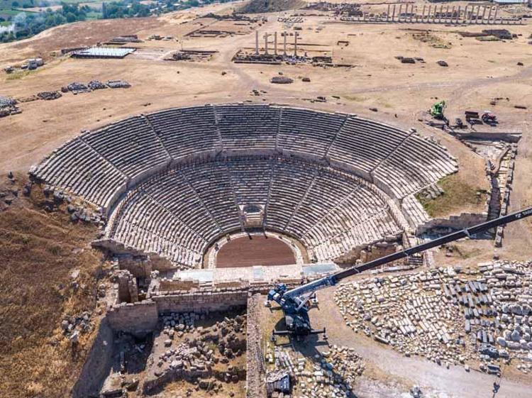 368 yılında Batı Anadolu'yu yıkan depremde yıkıldı ve tekrar yapıldı. 494 yılı depreminde ise büyük yıkıma uğradı. 2019 yılında proje kapsamında tiyatroda restorasyona başladık. 2 yıl içinde 96 metre çapındaki tiyatronun oturma basamaklarını ayağa kaldırdık. Bu dünya tarihinde uluslararası kriterlere uygun yüzde 90 orijinaline yakın olması açısından önemli bir restorasyon çalışması" dedi.