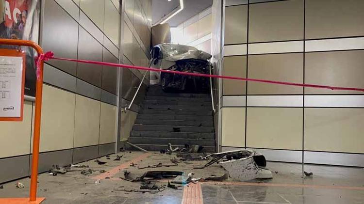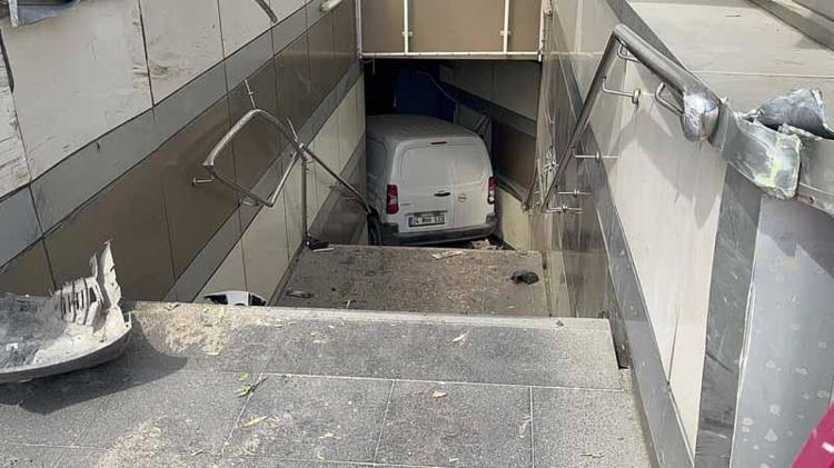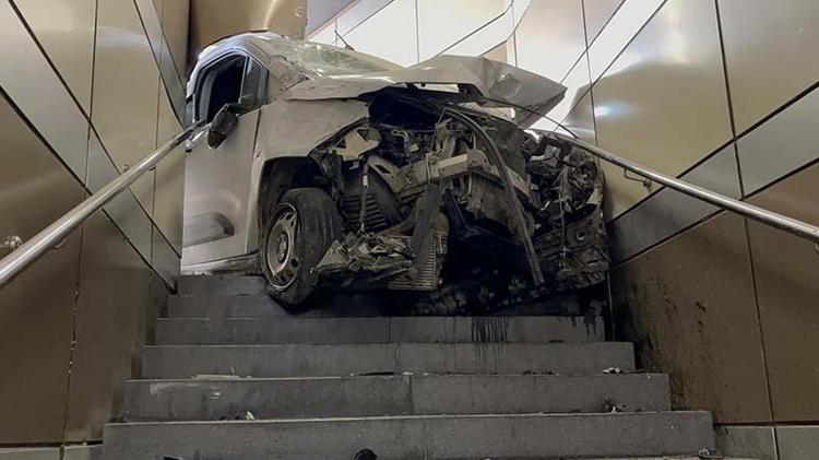 Bursa’da lastiği patlayan hafif ticari araç metro istasyonunun yaya alt geçidine girdi. Kazada sürücü yaralandı.