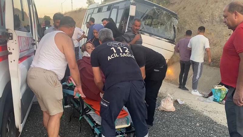 Lastiği patlayan tur midibüsü yağmur suyu kanalına düştü: 13 yaralı