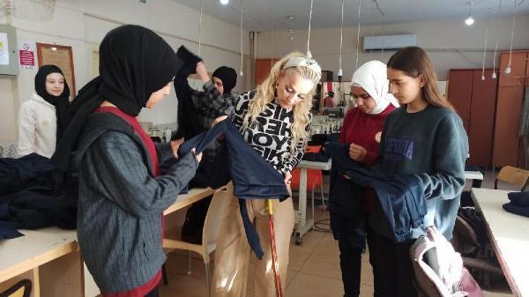 Moda Tasarım Teknolojileri Alan Şefi Özlem Eren, hayata geçirdikleri 'Hayata Dokunuyor' projesi kapsamında üretim yaptıklarını söyledi. Eren, "6 Şubat depreminden etkilenen öncelikle annesini ve babasını kaybetmiş 6-8 yaş grubu çocuklarımıza 80 takım olmak üzere eşofman takımları hazırlıyoruz.
