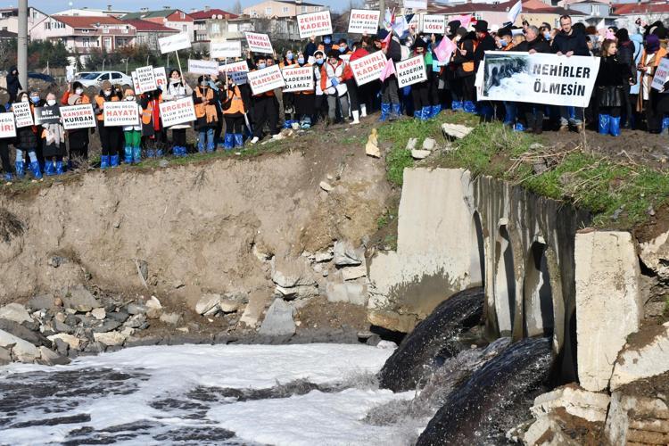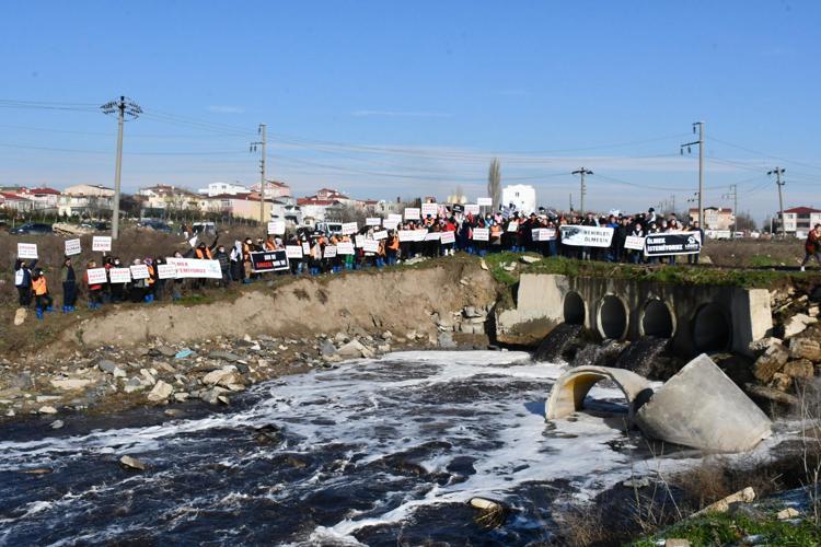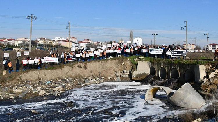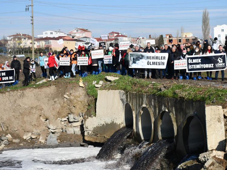 LÖSEMİLİ Çocuklar Sağlık ve Eğitim Vakfı (LÖSEV), Ergene Havzası'ndaki kirliliği ve kanser hastalığına dikkat çekmek için kirli akan Çorlu Deresi'nde 'Sen de kansere dur de' etkinliği düzenledi.