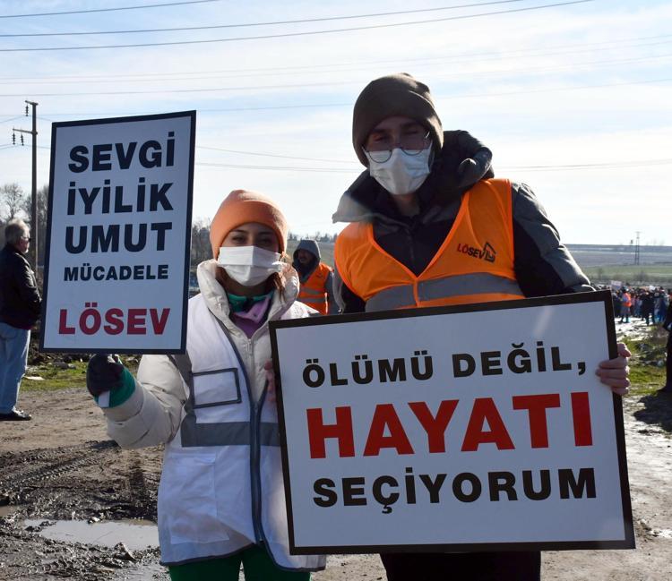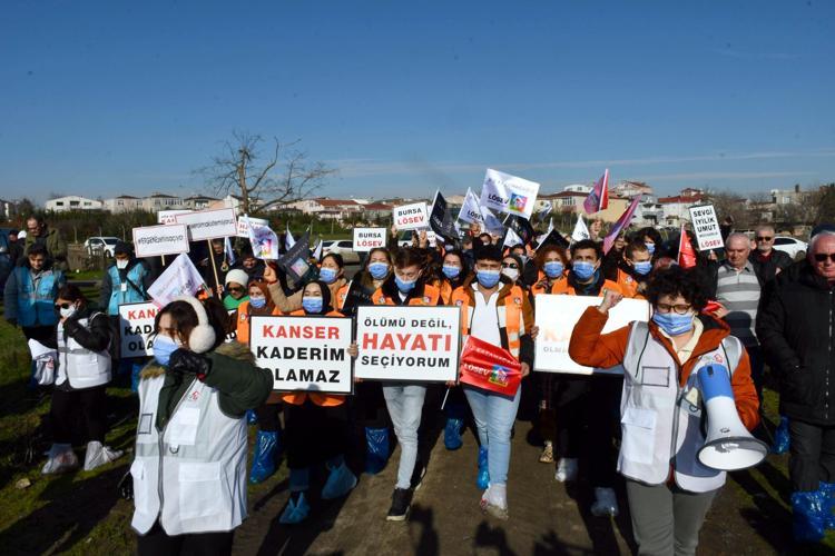 Kanser hastalığını yenenlerin de aralarında bulunduğu ve maske kullanan 500 LÖSEV gönüllüsünün katıldığı eylemde, 'Kanser olmak istemiyoruz', 'Nehirler ölmesin', 'Sen de kansere dur de' yazılı dövizler taşındı. LÖSEV Sosyal Hizmetler Genel Koordinatörü Jülide Arifoğlu, okuduğu basın açıklamasında şunları söyledi: