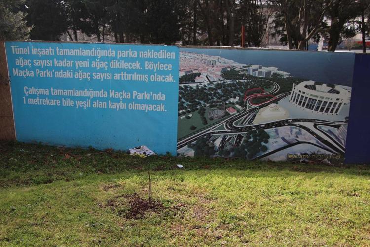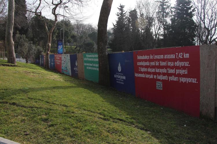 İSTANBUL Büyükşehir Belediyesi tarafından yürütülen Dolmabahçe-Levazım tüneli projesi kapsamında daha önce bir bölümü alüminyum plakalarla kapatılan Maçka Demokrasi Parkı’nın Beşiktaş'ın stadı Vodafone Park'a bakan kısmı da sabah saatlerinde gelen işçiler tarafından kapatılmaya başlandı. Kapatılan alandaki ağaçlar ise tek tek sayılarak kırmızı boyalarla işaretlendi.