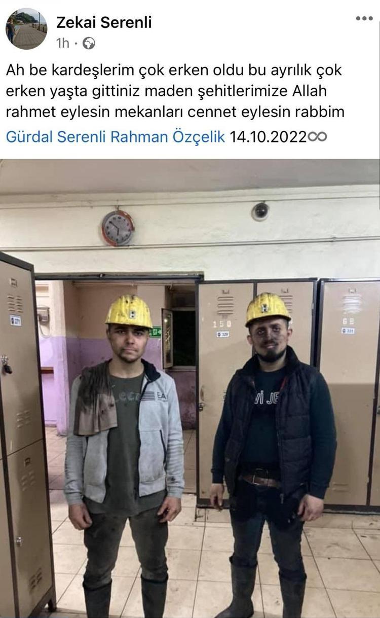 Serhat Kahraman’ın kuzeni Rıfat Kahraman ise “Bartın’da maden ocağında yaşanan patlama sonucu kuzenimiz Serhat Kahraman şehit olmuştur. Cenazesi öğle namazına Karabük Kışla Köyü camisinde kılınacaktır” paylaşımı yaptı.