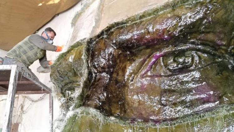 Heykeltıraş Furkan Ekici, maskın yapımının devam ettiğini belirterek, "Maskı, polyesterden kalıp tekniği ile yapıyoruz.