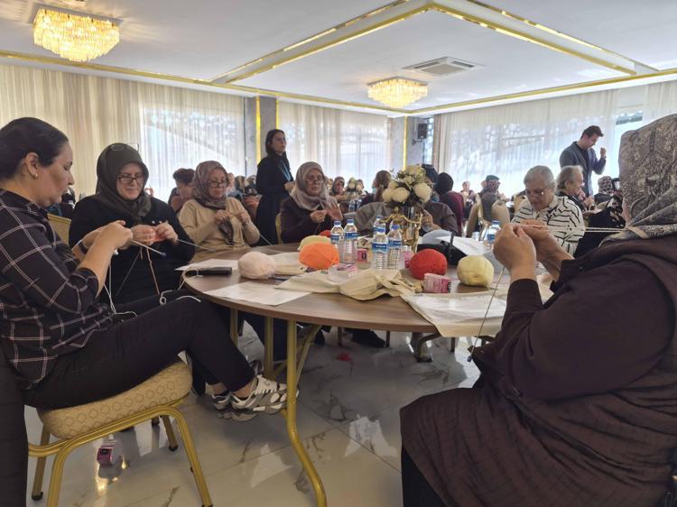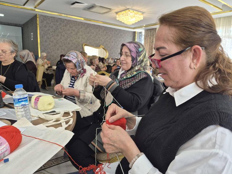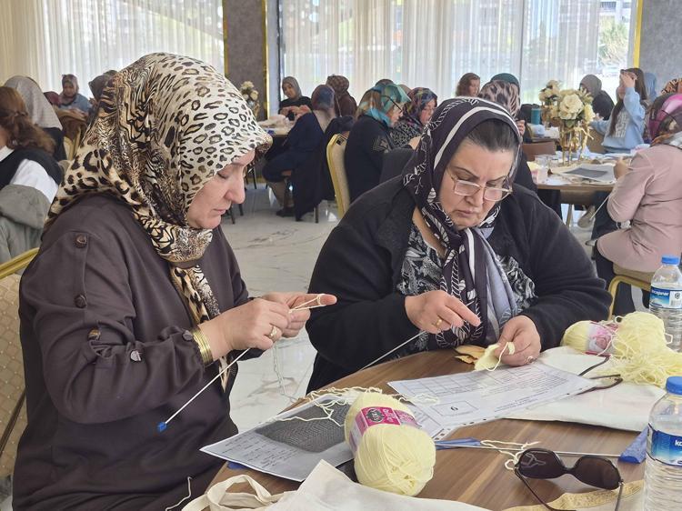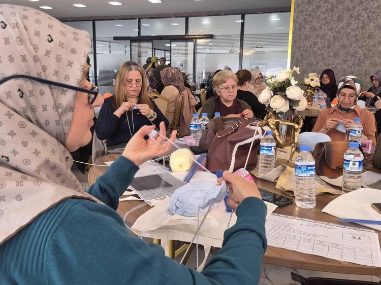 Malatya'da düzenlenen 'El Örgüsü Yarışması'nda kadınlar, hızlı örgü örmek için kıyasıya yarıştı.