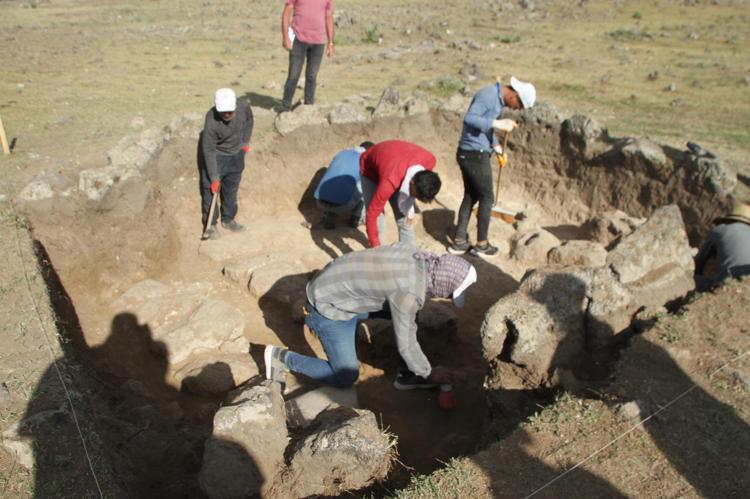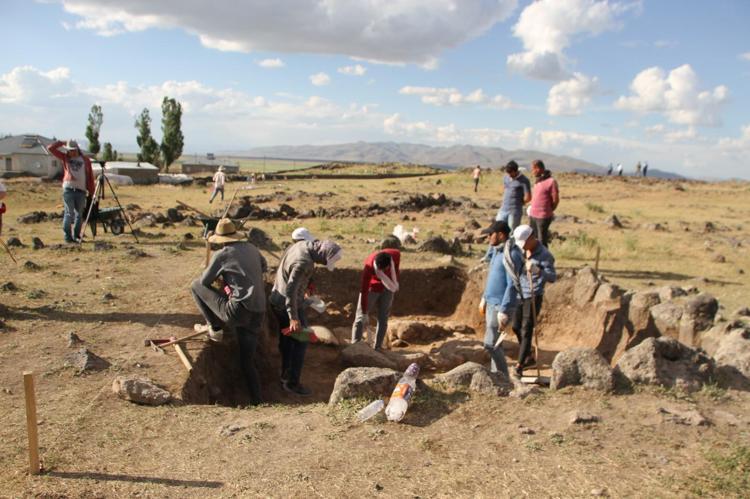 "Burası bir mezar alanı ve 50'nin üzerinde mezar var. Bu mezarlar içerisinden 9 tanesini açtık ve bunlar içerisinde karbon-14 testi sonucuna göre 14'üncü yüzyıla kadar indi. Şu an içinde bulunduğumuz Malazgirt merkez Afşin Mahallesi'ndeyiz. Malazgirt merkeze yaklaşık 7 kilometre güneydoğusundaki eski 'Kıfri' köyü burası.