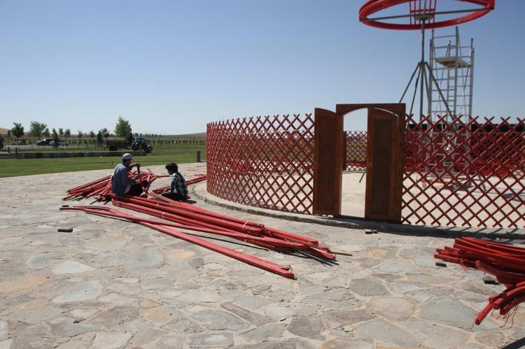 Tören alanındaki çalışmaları inceleyen Malazgirt Kaymakamı Göksu Bayram, "Malazgirt Zaferi'nin 952'nci yıl dönümünü etkinlikleri maksadıyla yapılan çalışmalar hemen hemen bitmek üzere. Keçeden yapılan büyük han çadırımız da tamamlanmak üzere. 16 adet geleneksel tematik çadır, tarihte kurulmuş 16 Türk devletlerini temsil etmektedir.