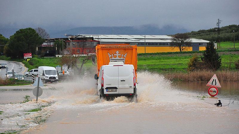 Manisa'da çay taştı; 20 mahalleyi şehir merkezine bağlayan köprü, su altında kaldı