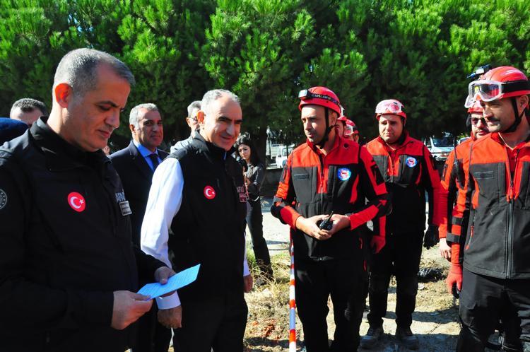 Saruhanlı ilçesinde deprem sebebiyle yıkılan 2 katlı binanın enkazında çalışmalar gerçekleşti. Manisa Valisi Vahdettin Özkan'ın yönettiği arama-kurtarma çalışmalarında 1 kişi sağ olarak enkaz altından çıkarıldı. Tatbikat sonrası basın açıklaması yapan Vali Özkan, afetlere karşı hazırlıklı olmanın önemine dikkati çekerek, "Deprem gibi büyük afetler, yalnızca bir kurumun değil, tüm toplumun ortak mücadelesini gerektiren krizlerdir. Bu tatbikat, sahip olduğumuz imkan ve kabiliyetleri ölçmek, toplumda afet bilincini artırmak ve vatandaşlarımızı doğru reflekslerle donatmak açısından son derece önemlidir" dedi.
