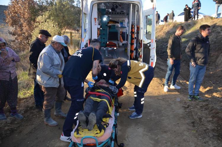 Manisa’nın Demirci ilçesinde, elektrik direğine çarptıktan sonra savrularak şarampole devrilen otomobilinde sıkışan sürücü Nebi Eryiyit (88) ağır yaralandı.