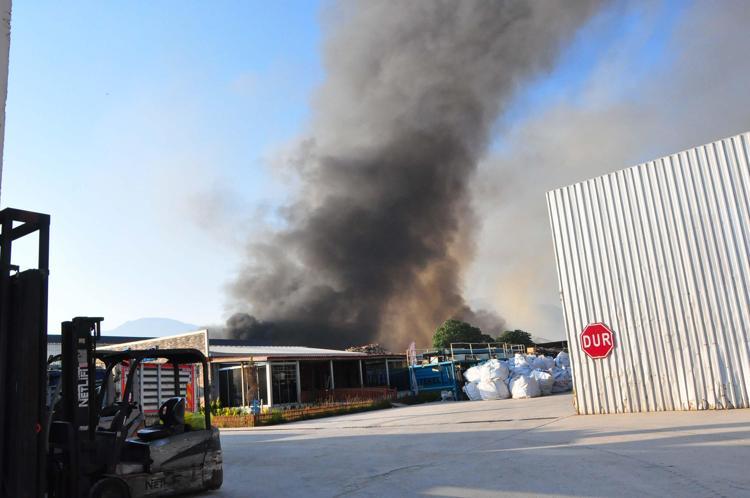 Yunusemre ilçesi Muradiye Organize Sanayi Bölgesi'ndeki geri dönüşüm tesisinde, dün saat 16.30 sıralarında yangın çıktı. Depodaki plastik ve kimyasal atıkların alev almasıyla çıkan yangın, tesise de sıçradı.