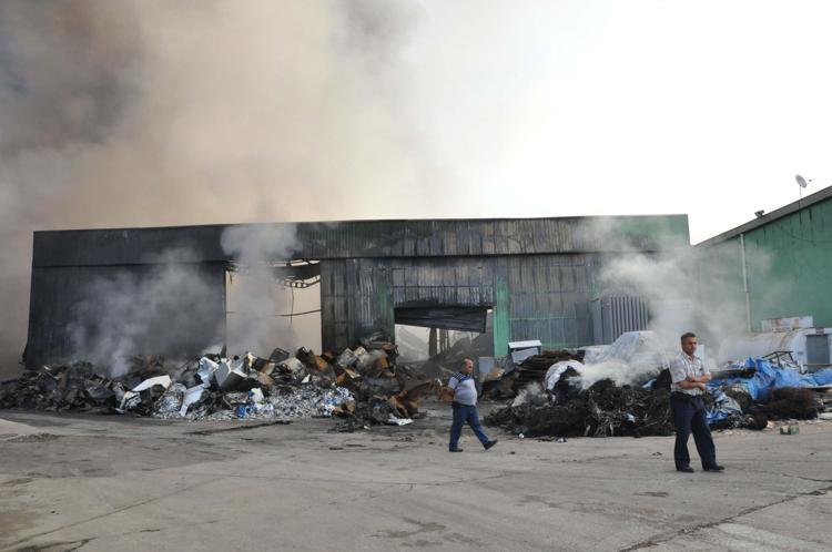 'Çevre lisansı' olduğu öğrenilen geri dönüşüm tesisinde çıkan yangının nedeni henüz tespit edilemedi. Konuya ilişkin incelemenin sürdüğü bildirildi.