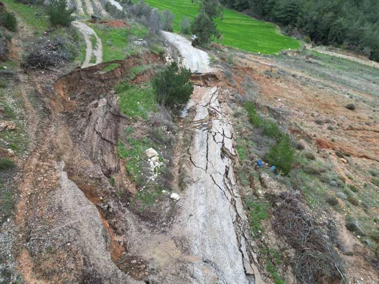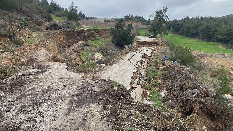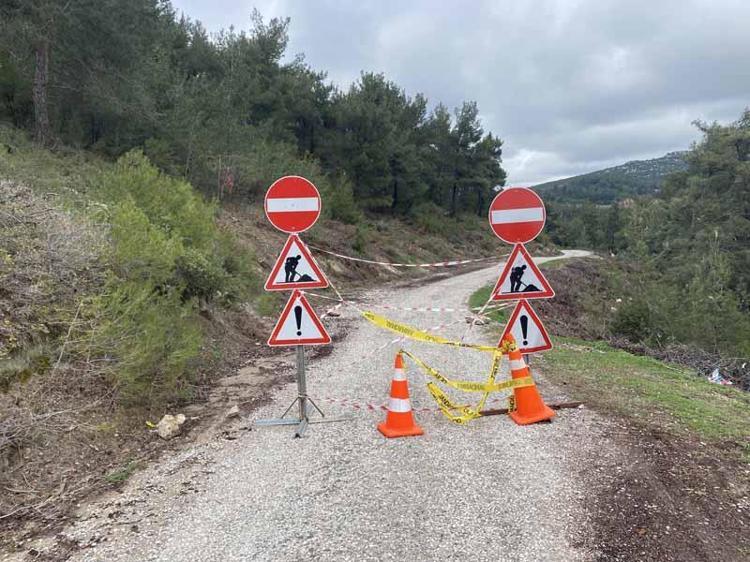 Manisa'da Sülüklü Göl yolunda toprak kayması; yol ulaşıma kapatıldı