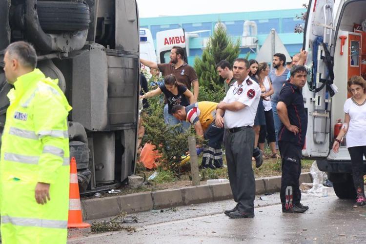 Manisa'da yolcu otobüsü devrildi: 1 ölü, 25 yaralı
