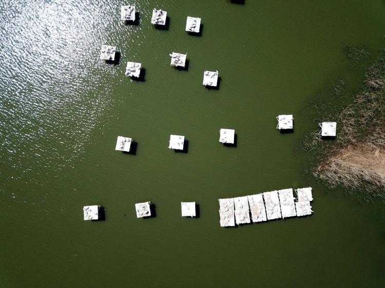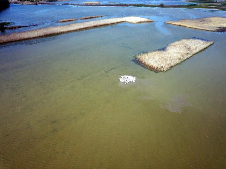 Türlerin sayımlarının yapıldığı Kuş Cenneti Milli Parkı ve pelikanların kuluçkaya yattığı platformlar, dronla havadan görüntülendi.