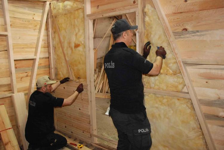Marangoz polisler, depremden etkilenen emniyet müdürlükleri için evler yaptı
