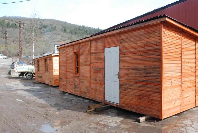 Bartın Emniyet Müdürlüğü'nde görevli polis memurları Nazif Durak (49) ve İsmail Tirli (47), Ulus ilçesinde bulunan kereste fabrikasında gönüllü olarak çalışarak, depremden etkilenen bölgelerdeki emniyet müdürlüklerinin hizmetinde kullanılmak üzere evler yapmaya başladı.