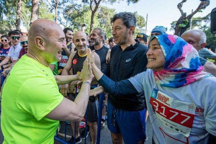 Başkan Soyer ve Bakan Kasapoğlu'nun da yer aldığı 10 kilometrelik yarışta ilk üç sıra kadınlarda Dilan Atak (0.38.03), Fatma Arık (0.38.04), İpek Öztosun (0.40.03), erkeklerde Bahattin Üney (0.31.14), Emin Berke Murathan (0.31.31), Mestan Turhan (0.31.53) şeklinde oluştu.