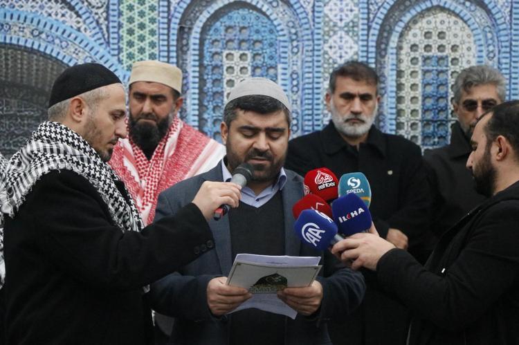 Grup adına açıklamayı okuyan Alimler ve Medreseler Birliği üyesi Hüseyin İnci, Gazze’dekilerin yanında olmanın dini ve tarihi bir sorumluluk olduğunu belirterek, “Gazze ve oradaki kardeşlerimizin yanında olmak dini ve tarihi bir sorumluluktur.