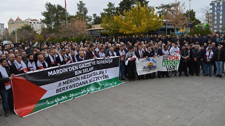 Mardin ve Diyarbakır’da, aralarında Hür Dava Partisi (HÜDA PAR) ve sivil toplum kuruluşlarının da olduğu gruplar, cuma namazı çıkışı İsrail'i protesto ederek, Filistin'e destek çağrısında bulundu.