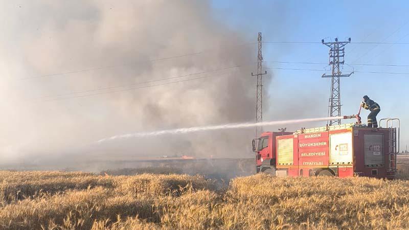 Mardin’in Kızıltepe ile Nusaybin ilçelerinde buğday ekili arazilerde çıkan yangında toplamda 155 dönüm alan zarar gördü.