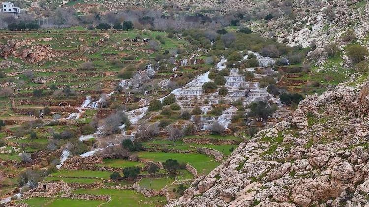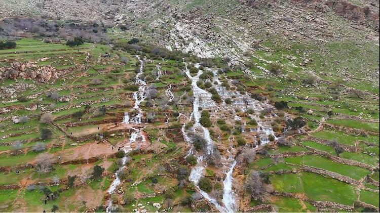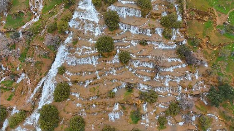 Mardin’in Kızıltepe ilçesinde vatandaşların ‘Emrud travertenleri’ adını verdiği Başdeğirmen Şelalesi, havadan görüntülendi. Valilik, doğa tutkunlarını şelaleyi keşfetmeye davet etti.