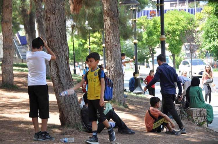 Mardin'de hava sıcaklığı 40 derecenin üzerine çıkarken, kent genelinde cadde ve sokaklar boş kaldı. Dışarı çıkmayı tercih edenlerse park ve bahçelerde vakit geçirerek sıcaktan korunmaya çalıştı.