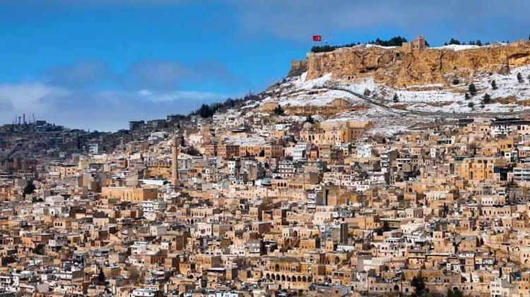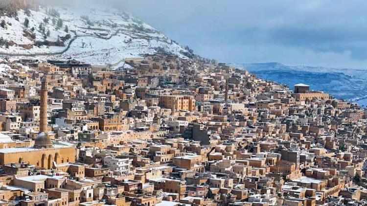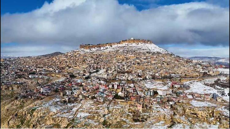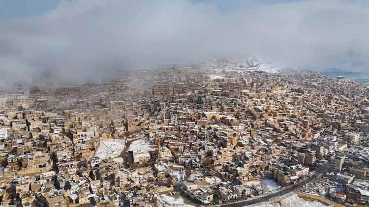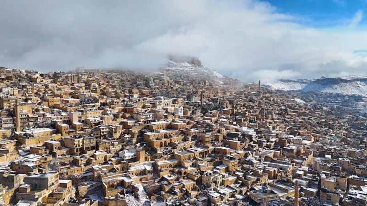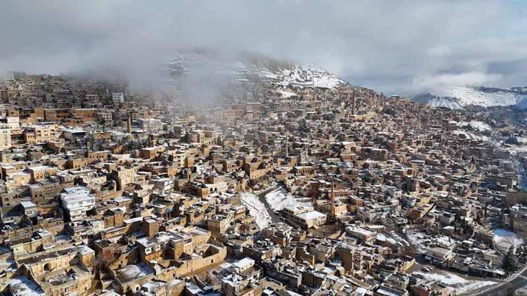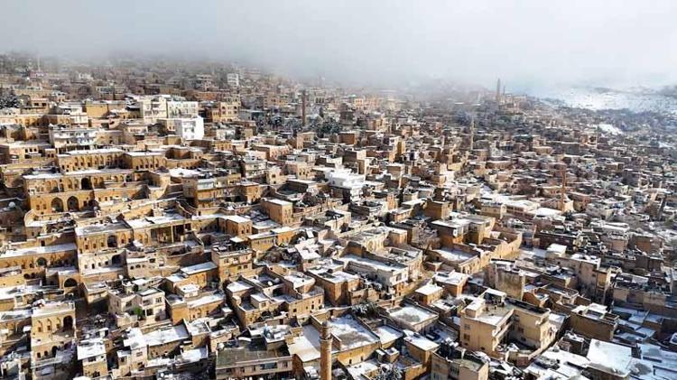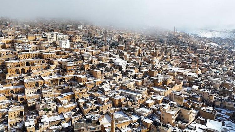 Mardin'de kar güzelliği dron kamerasında