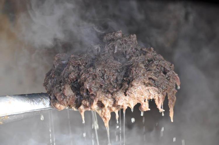Yaklaşık 4-5 saat et kendi suyunda ve buharında piştikten sonra bu sefer eti iç yağıyla 2-3 saat kavuruyoruz. Kavururken sürekli karıştırmak zorundayız. Karıştırmasan et yanar, dibi tutar ve lezzetli olmaz. Kavurmamız cennet hurması gibi kıpkırmızı oluncaya kadar devam ediyoruz. Bu zahmetli yolculuk, yaklaşık 7 saat sürüyor” dedi.