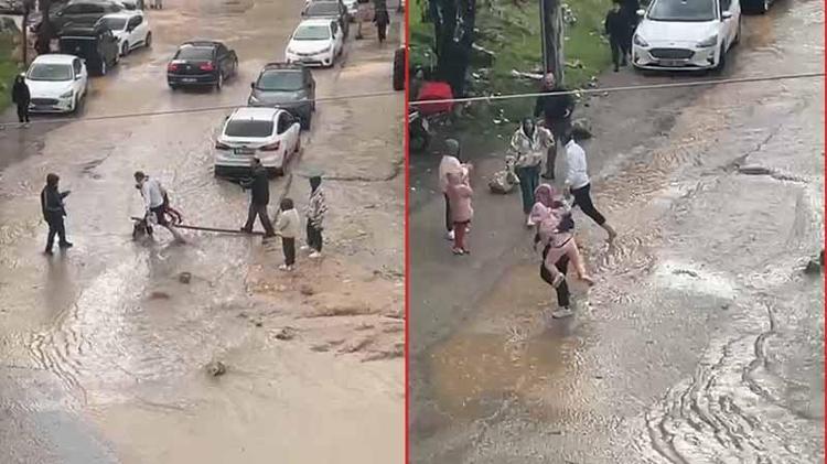 13 Mart Mahallesi'nde ise bazı yayalar, karşıya geçmek için yola tahta koyarak üzerinden geçti. O anlar, cep telefonuyla kaydedildi. Görüntülerde, bazı vatandaşların da kucağına aldıkları çocuklarıyla yolun karşısına geçtiği görüldü.