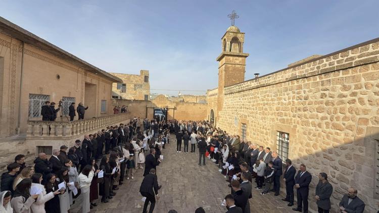 Mardin’de Süryaniler, Hz. İsa’nın doğuşunu simgeleyen ve Hristiyanların ilk dini bayramı olarak kabul edilen ‘Doğuş (Yaldo) Bayramı’nı Artuklu ilçesindeki Kırklar Kilisesi’nde düzenlenen ayinle kutladı. Vali Tuncay Akkoyun, kilisenin kabul salonunda cemaatle bayramlaştı.