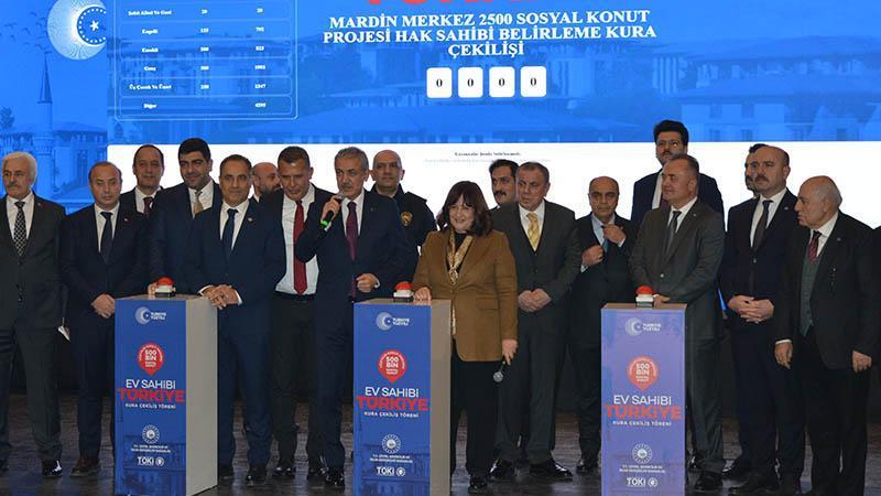 Çevre, Şehircilik ve İklim Değişikliği Bakanlığı ile Toplu Konut İdaresi Başkanlığı (TOKİ) tarafından yürütülen 500 bin sosyal konut projesi kapsamında Mardin’de inşa edilecek 5 bin 357 konutun hak sahiplerini belirlemek amacıyla kura çekimi gerçekleştirildi.
