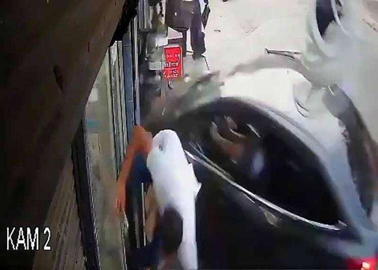 Markete giren otomobilin altında kalmaktan son anda kurtulan yaya: Verilmiş sadakamız varmış