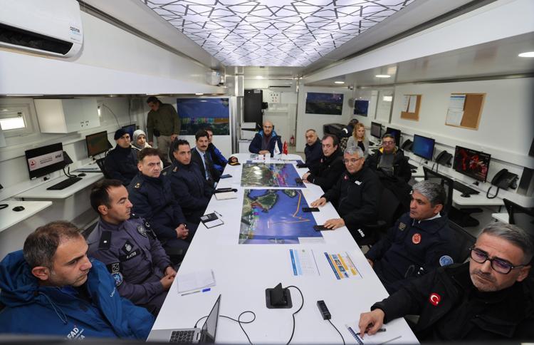 Marmara Denizi açıklarında batan 'BATUHAN A' isimli ticari geminin kayıp 4 mürettebatını arama çalışmalarında 7’nci gün geride kalırken, 572 personelle yürütülen arama- kurtarma çalışmalarını koordine eden Bursa Valisi Mahmut Demirtaş, Kıyı Emniyeti’nin operasyonel kapasitesini artıran Türkiye'nin ilk acil müdahale gemisi 'Nene Hatun'a giderek sürdürülen işlemler hakkında bilgi aldı. AFAD Mobil Koordinasyon Merkezi’ndeki çalışmaları da yerinde takip eden Vali Demirtaş, kayıp mürettebatın ailelerine de bilgi verdi.