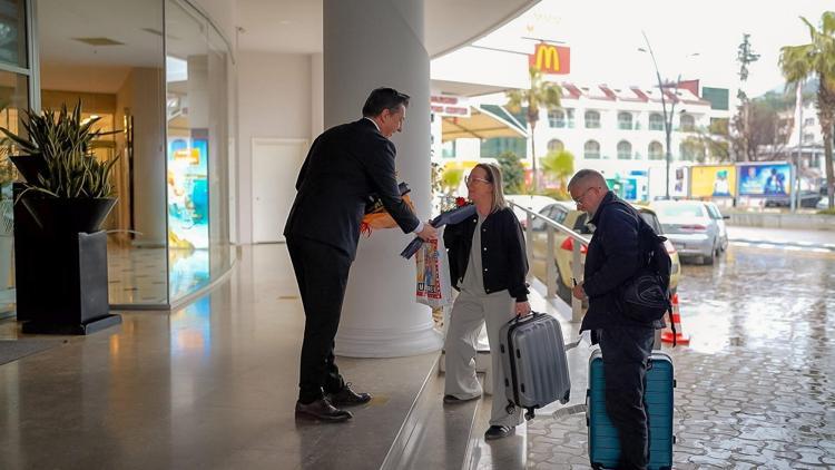 Marmaris'te turistler çiçeklerle karşılaşılandı