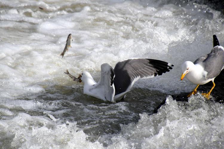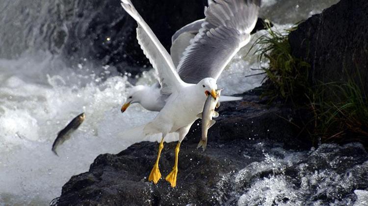Martılar, avlanması yasak göç yolundaki inci kefallerini yakalıyor