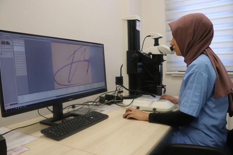 Belge İnceleme Şube Müdürlüğü'nde sorumlu komiser olarak görev yapan Nurefşan Bingöl, "Değeri ve resmi niteliği olan her türlü belgenin sahte ya da tahrifatlı olup olmadığı, el yazısı ve imzalarının şahıs aidiyetinin belirlenmesi, makine yazılarının hangi makineden elde edildiği hususunda adli ve idari makamlara uzmanlık raporu hazırlayan birimdir" dedi. Belge İnceleme Şube Müdürlüğü olarak vatandaşları iki alanda uyarmak istediklerini de belirten Bingöl, "Borç ve yükümlülük altına girilen senet ve benzeri belgelerde, belgeyi borçlunun kendi kalemi ile tanzim etmesi ve imzalaması gerekmektedir. Bu tarz mağduriyetlerin önüne geçilmesinde bu önemli bir aşamadır. İkinci olarak imza atılan belgeler, titizlikle kontrol edilmelidir. Masumane bir şekilde kargonuzu teslim aldığınıza dair attığınız bir imza aslında boş bir senede atılmış imza olabilir" diye konuştu.