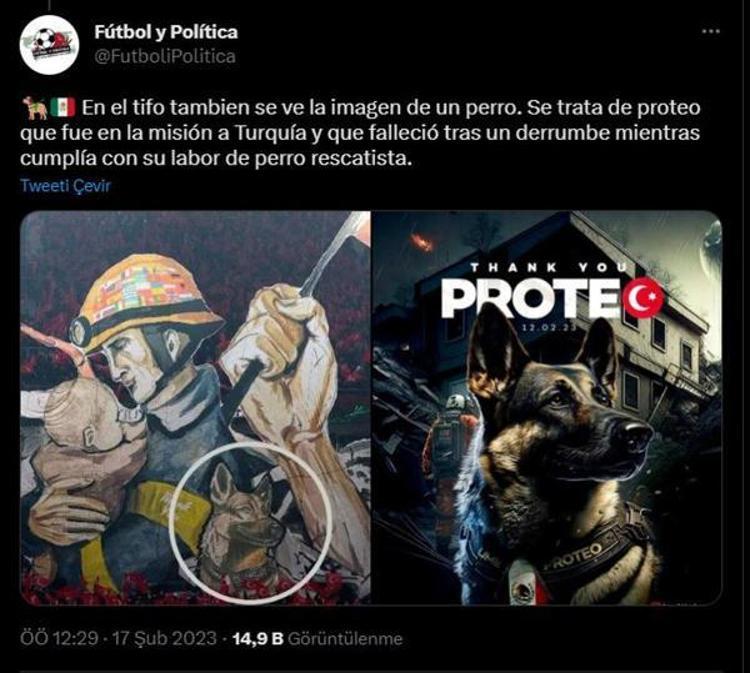 Adıyaman'da depremde görev yaparken ölen Meksika Milli Savunma Bakanlığı'na ait arama kurtarma köpeği 'Proteo'nun anısını yaşatacak olan yavru köpeğin, Ankara'dan veterinerler Güven Kurnaz ve Deniz Çayır tarafından Meksika'ya gönderildiği ortaya çıktı. Meksika'da askeri törenle karşılanan ve 'Arkadaş' ismi verilen Alman çoban köpeği, 6 aylık eğitimin ardından üzerinde Türk bayrağı bulunan yelekle arama kurtarma köpeği olarak görev yapacak.
