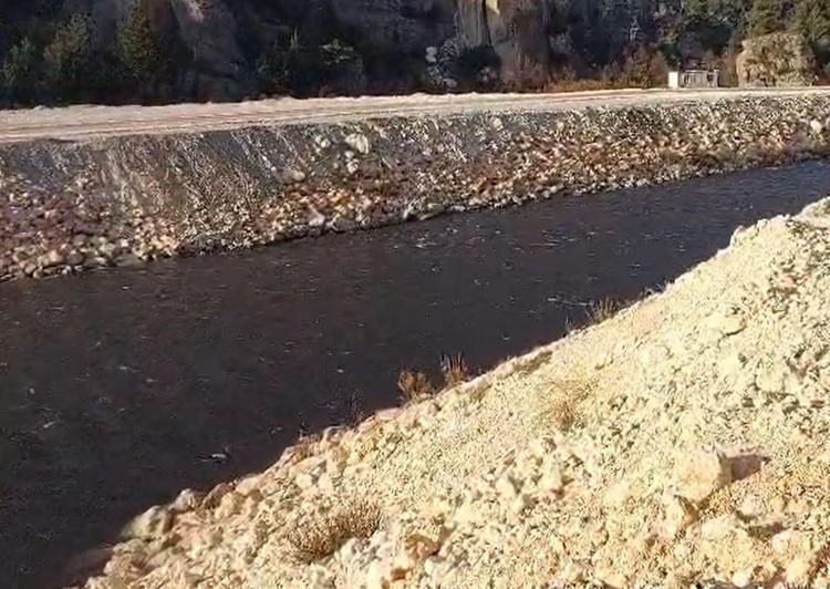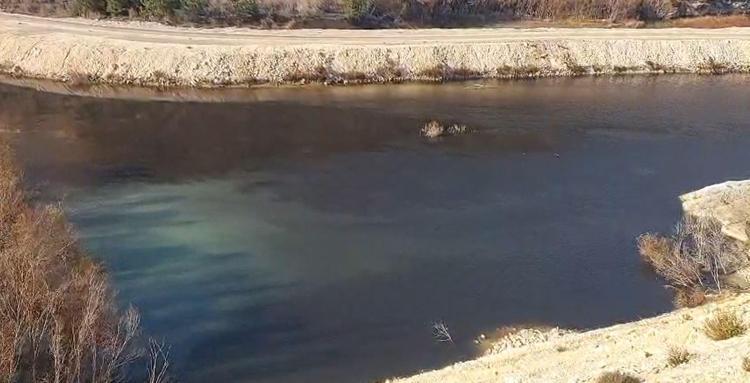 Mersin'in Silifke ilçesinde turkuaz renkli Göksu Nehri'ne akan atıklar nedeniyle suyun rengi koyulaştı.