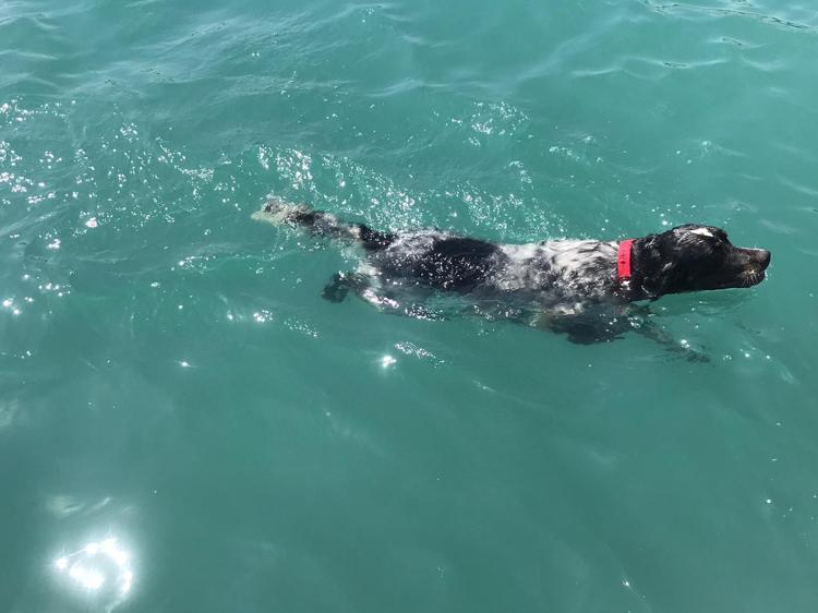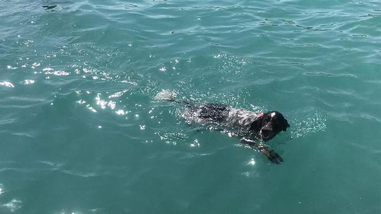2 yaşındaki avcı köpeği denizde hem serinledi hem de yüzenlerle oynadı. 'Paşa'nın sahibi Orhan Uzun (48), "Yüzmeyi çok seviyor. Bizimle denizde yüzüyor. İnsanlar da onu seviyor. Hem serinliyor hem de oynayarak güzel vakit geçiriyor. Havalar sıcak olduğu için 'Paşa' ile denize giriyoruz" dedi.