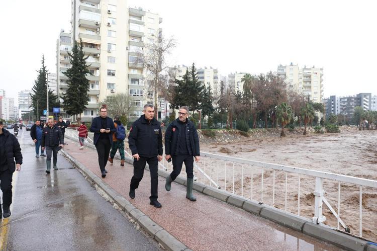 Mersin Valisi Atilla Toros, sağanak yağış sonrası taşkınları yaşandığı Mezitli, Toroslar ve Erdemli ilçesinde incelemelerde bulundu. İlgililerden bilgi alan Vali Toros, su taşkını nedeniyle yaşanabilecek olası aksaklıkların önüne geçilmesi için ekiplerin sahada teyakkuz halinde olduğunu belirtti. Bölgede gerekli müdahalelerin aralıksız sürdürüldüğünü ifade eden Vali Toros, tüm birimlerin sahada eş güdüm içerisinde kesintisiz olarak görev yaptığını, gerekli kontrol, müdahale ve risk azaltma çalışmalarının hızlı bir şekilde sürdürüldüğünü kaydetti.