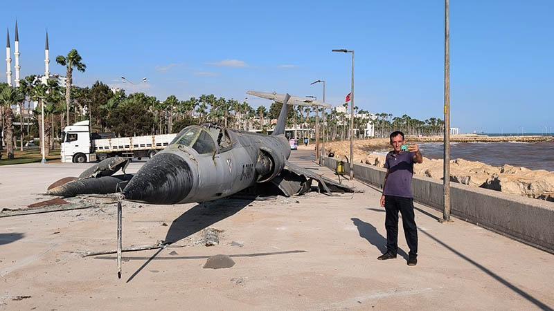 Mersin’de sahilde sergilenen savaş uçağı kaldırıldı