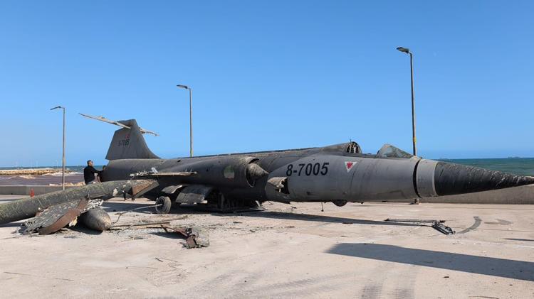 Mersin sahilinde sergilenen, 'uçan tabut' adı verilen simge savaş uçağı, ömrünü tamamladığı için kaldırıldı.