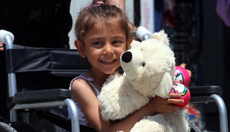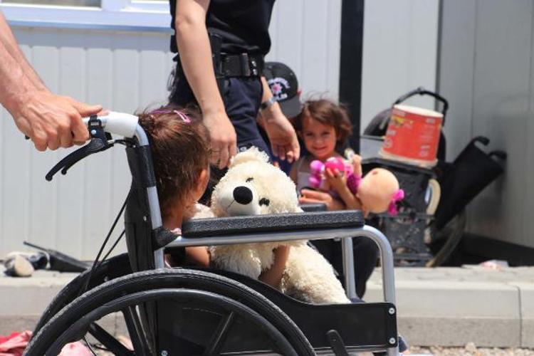Merve Hazal Bülbül, bu sabah yeni tekerlekli sandalyeye kavuşması ile mutluluk yaşadı. Yüzü gülen Merve Hazal'ı ayrıca Aile Sosyal Politikalar Müdürlüğü, Nurdağı Kaymakamlığı ekipleri ve İl Emniyet Müdürlüğü’ne bağlı Toplum Destekli Polislik Şubesi ekipleri de kaldığı konteynerde ziyaret etti. Ekipler ailenin sıkıntılarını dinleyip destek sağlarken, polisler ise Merve’ye hediyeler verip oyunlar oynadı.