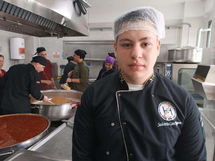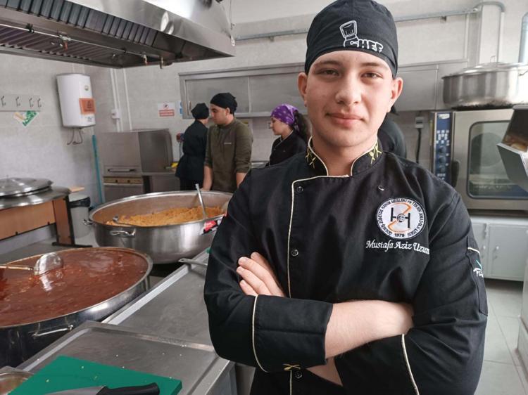Yiyecek İçecek Hizmetleri Bölümü öğrencisi Mustafa Aziz Uzun (18), "Okul için çok değerli bir proje. Pişirme, doğrama gibi teknikler açısından bize çok şey katıyor. İnsani duygular nedeniyle aile ortamı oluşuyor.