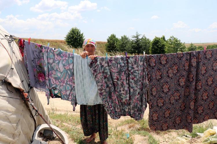 Toplam 3 çocuğu ve 7 torunuyla tek çadırda kalan Serpil Batan (57), "Bizim yaşantımız bu. Yemek zorluğu, su zorluğu çekiyoruz. Önceleri kalaycılık yapıyorduk, çapa işi, çeltik işi yapıyorduk ama bunlar da azaldı. Bir gün toksak ikinci günü açız. Çalışmazsak hiç olmaz. Hayatımız bu. 17-18 yaşımdan beri bu göçebe hayatı yaşıyorum, 40 yıl geçmiş. Annem benden daha kötü yaşadı.