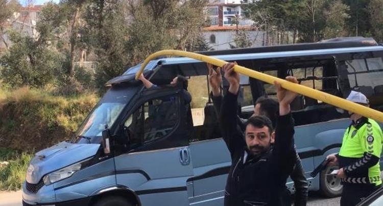 Hasar oluşan minibüsten metal boru çıkarılırken, şikayet üzerine inceleme başlatıldı.